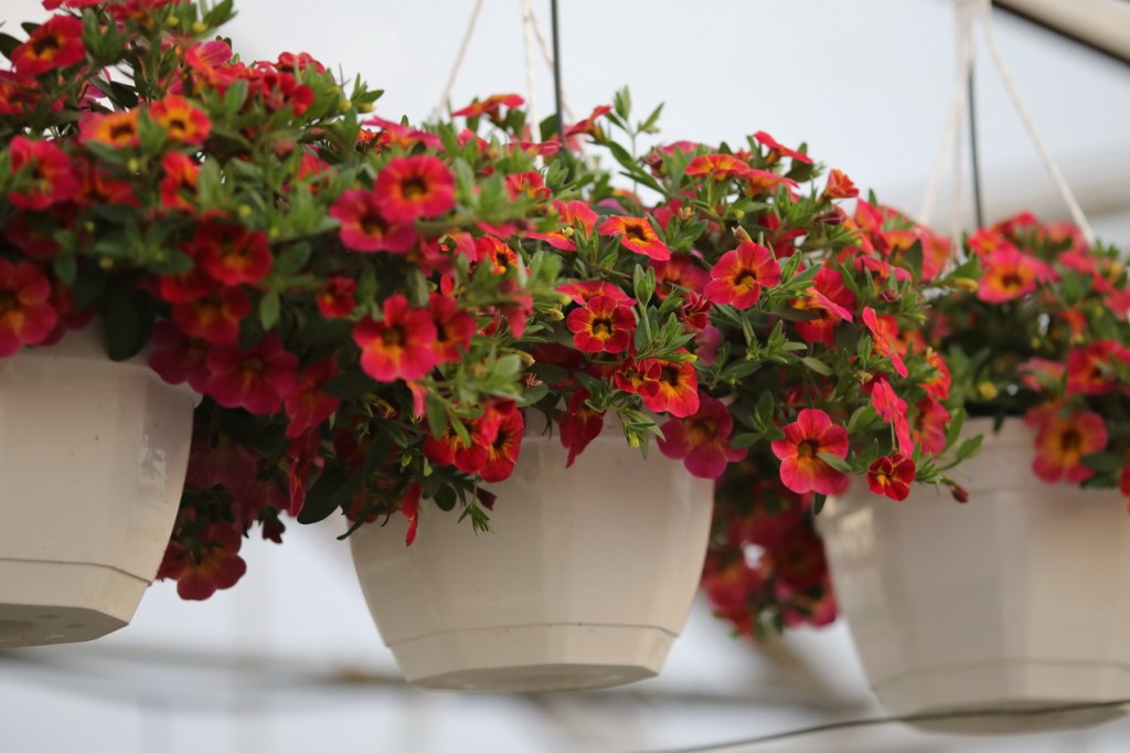 Kukkien runsautta amppeleissa