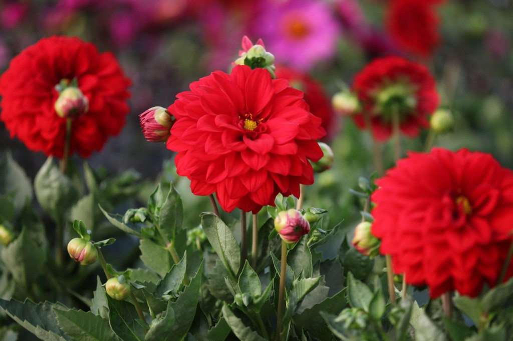 Suurikukkaiset ja komealehtiset daaliat ovat kesäkukkaistutusten katseenvangitsijoita.