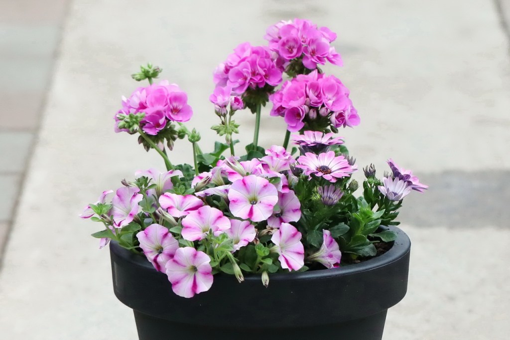 Petunioissa on paljon erilaisia värejä, joten niitä on helppo yhdistellä muiden kukkien seuraan.